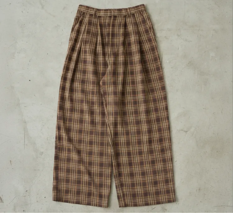 チェック柄と落ち感のある素材で 体系カバーもできます。 -