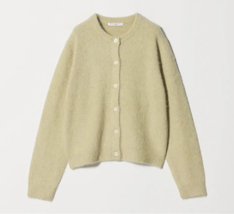 やさしい毛足の素材感が 着こなしの アクセントになる クルーネックカーディガン。